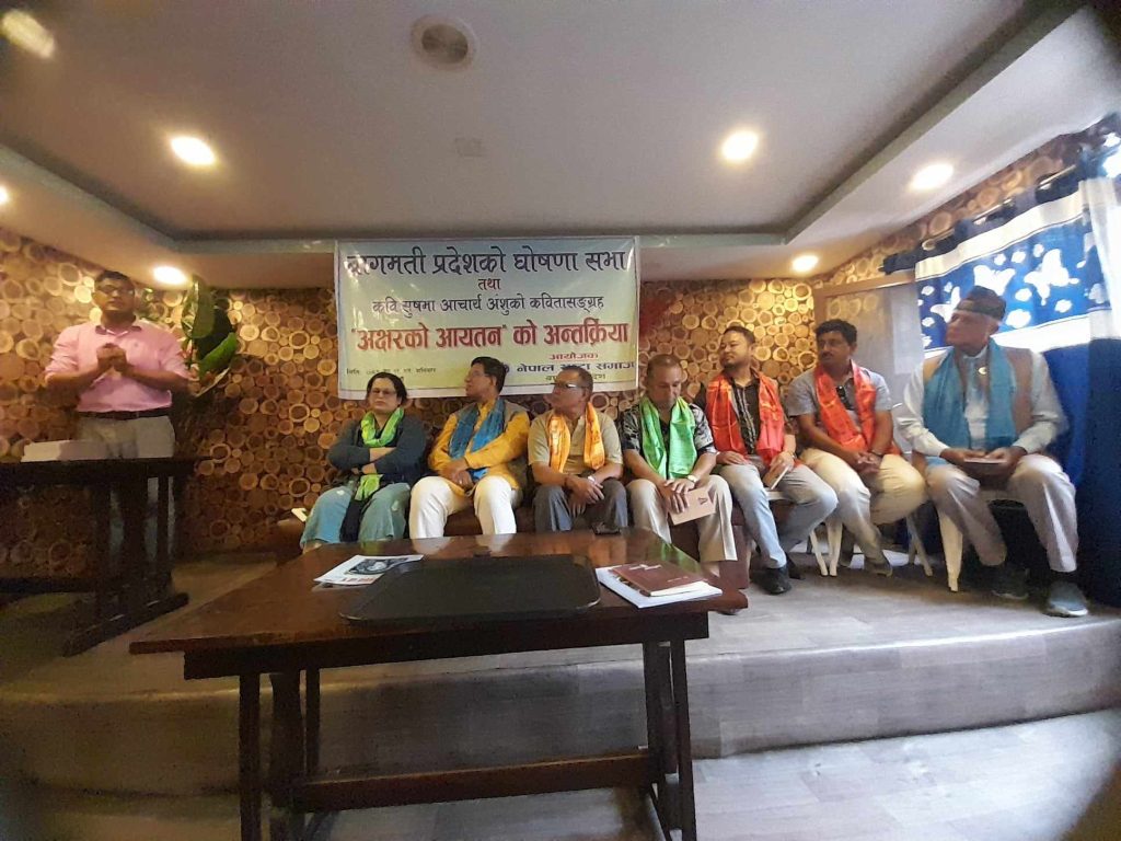नेपाल स्रष्टा समाज,वागमती प्रदेश तदर्थ समितिको आयोजनामा  नेपाल स्रष्टा समाज,वागमती प्रदेश तदर्थ समितिको बिधिवत घोषणा तथा कवि सुषमा आचार्यद्वारा लिखित कबिता संग्रह अक्षरको आयतनमाथी अन्तरक्रिया कार्यक्रम सम्पन्न भएको छ  ।