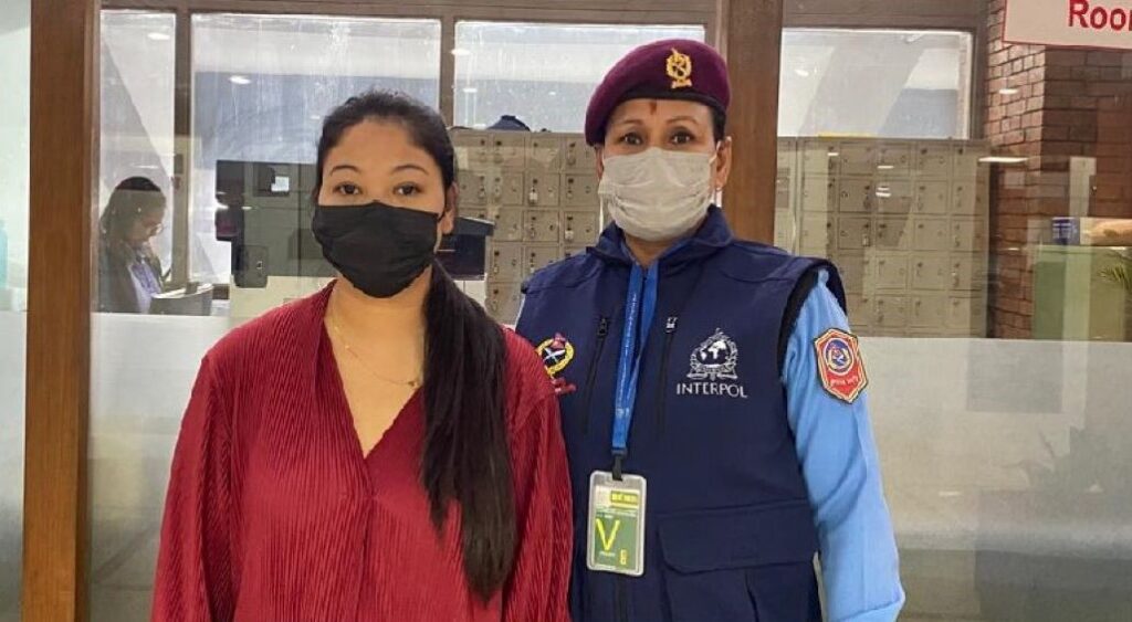 सिन्धुपाल्चोक मान्खा ठेगाना भएकी बिनु शाक्यलाई इन्टरपोलको कम्बोडिया शाखासँगको समन्वयमा पक्राउ गरी ठगी मुद्दामा कारबाही गर्ने÷गराउने प्रयोजनार्थ स्वदेश ल्याइएको नेपाल प्रहरीका प्रवक्ता प्रहरी नायब महानिरीक्षक दानबहादुर कार्कीले जानकारी दिनुभयो ।