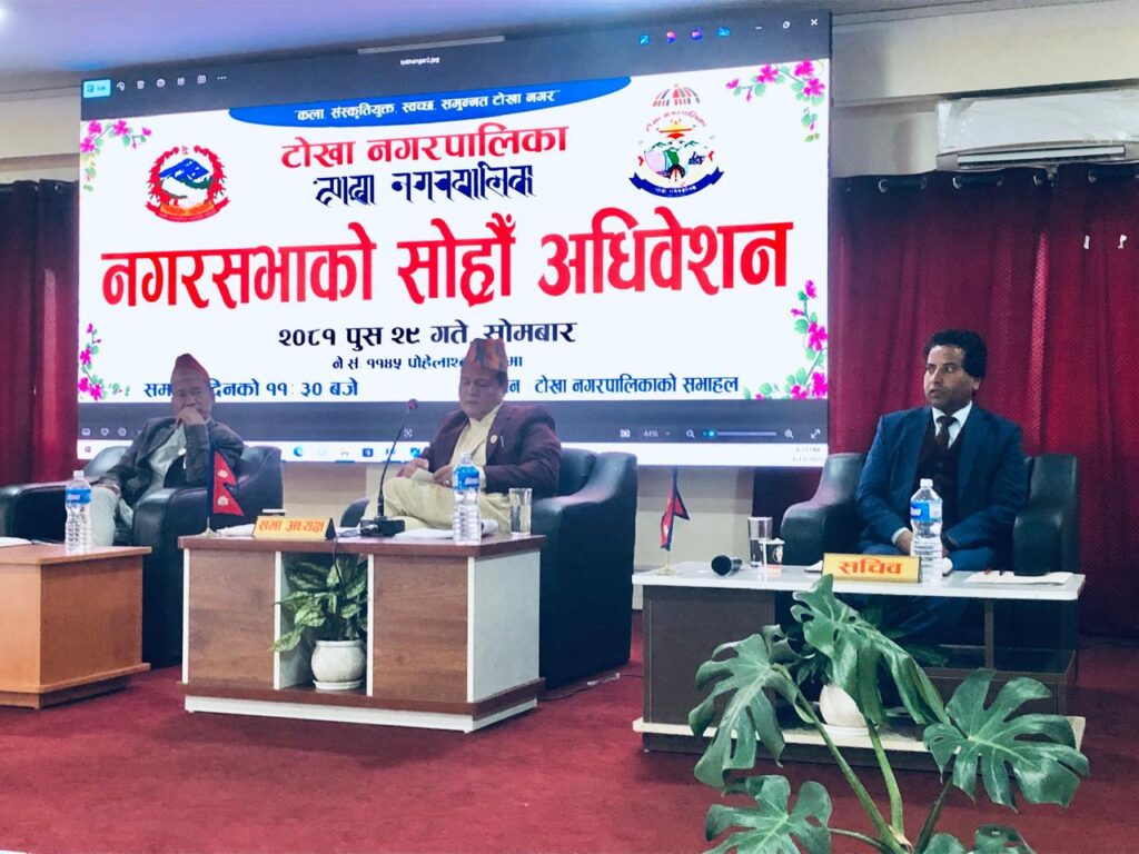 टोखा नगरपालिकाको १६ औँ अधिवेशन आज सम्पन्न भएको छ । नगरसभाको हिउँदे अधिवेशन स्वरूप नगर उपप्रमुख मुरारी तामाङले आ.ब. २०८१/८२ को आय–व्ययको संशोधन प्रस्ताव प्रस्तुत गरि अधिवेशन सम्पन्न भएको हो । अधिवेशनले आर्थिक ऐनको संशोधन प्रस्ताव तथा नगरसभामा पेस भएको ६ महिने आय–व्यय एबम १६ बुँदे बिभिन्न कार्यक्रमलाई समेत सर्वसम्मतीले पास गरेको छ।