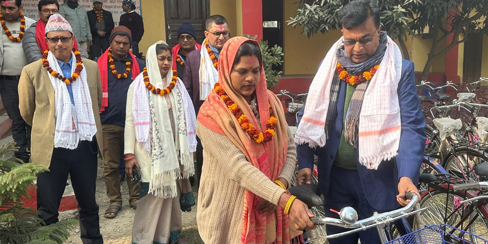 अत्यन्तै न्यून पारिश्रमिक लिएर गाउँघरमा स्वास्थ्य सेवा प्रवाह गर्न उच्च योगदान पुर्याउने महिला स्वास्थ्य स्वयंसेविकालाई प्रोत्साहनस्वरुप नगरभित्र यसरी पहिलो पटक साइकल उपलब्ध गराइएको नगरप्रमुख देवेन्द्रकुमार यादवले जानकारी दिनुभयो ।