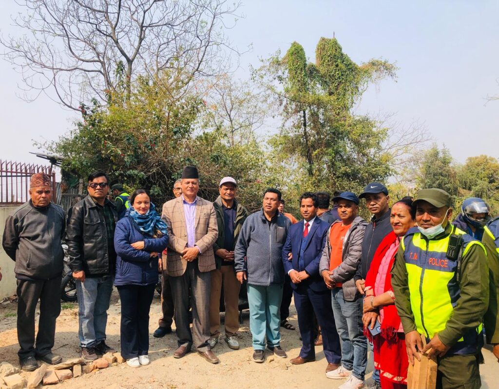वडा १० का वडा अध्यक्ष मचाकाजी महर्जनको अध्यक्षतामा भएको आजको नापजाँच कार्यमा नगर प्रमुख प्रकाश अधिकारी,नगर प्रशासकीय अधिकृत शेरबहादुर बि सी ,नगर प्रबक्ता बच्चुराज बस्याल लगाएत नगरपालिकाका कर्मचारी, जनप्रतिनिधि,प्रहरी तथा स्थानीयबासी हरुको उपस्थिति रहेको थियो ।