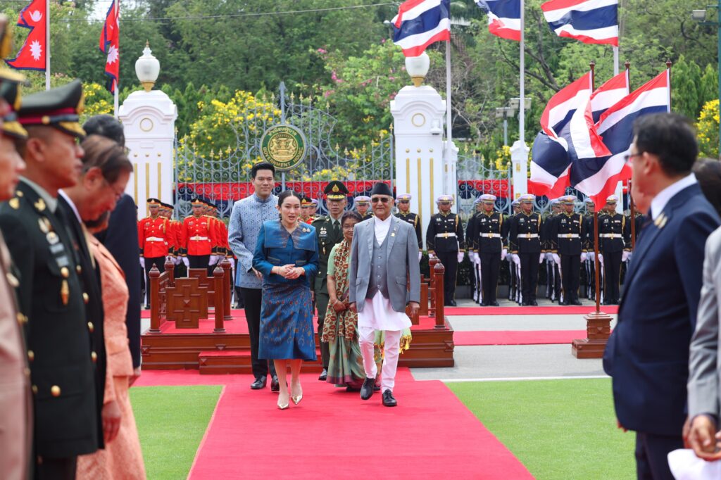 त्यसअघि थाइल्याण्डको सरकारी भवनमा प्रधानमन्त्री ओलीको समकक्षी शिनावात्राले स्वागत गर्नुभएको थियो ।