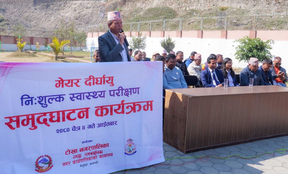 टोखा नगरपालिकाले तेस्रो पटक जेष्ठ नागरिकका लागि निःशुल्क स्वास्थ्य परिक्षणको मेयर दिर्घायु निःशुल्क स्वास्थ्य परीक्षण ( होलबडी चेकअप) कार्यक्रमको शुभारम्भ गरेको छ ।थप सुबिधाको व्यवस्था सहितको स्वास्थ्य परीक्षण कार्यक्रमको आज नगर प्रमुख श्री प्रकाश अधिकारीले समुद्घाटन गर्नु भएको हो ।